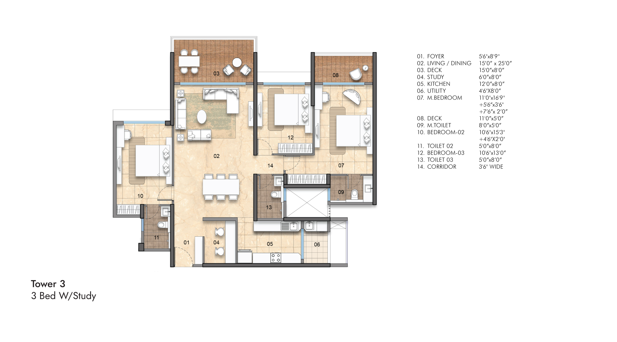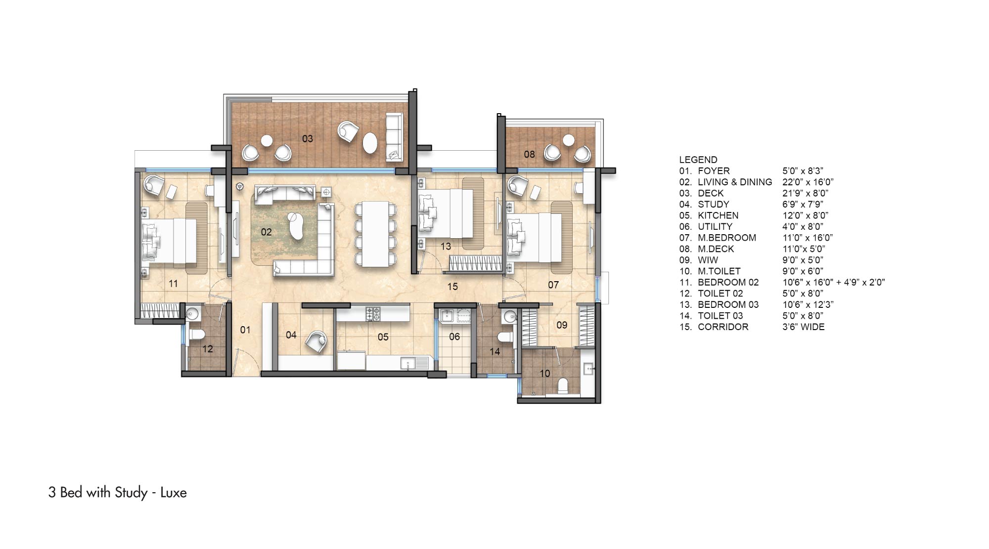 Lodha Haven presents impeccably designed 3BHK and 4BHK, each adorned with terrace-like decks that open up to breathtaking vistas—a tranquil lake, the verdant expanse of a 6-acre private forest sanctuary known as the Garden of Eden, or the ever-evolving city skyline.