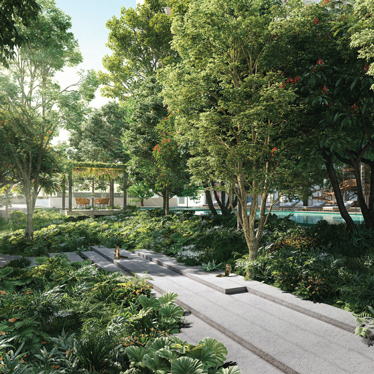 Living here is living in nature’s embrace. Tree-lined pathways, floral nooks and garden pavilions create a diverse tapestry of moods and spaces for residents to enjoy and revel in active, passive, and contemplative activities. At the heart of this lush sanctuary lies a 20,000+ sq. ft. clubhouse. Start with a heart-pumping run in the expansive gym or test your strength under skylit ceilings. Challenge your neighbours to a lively game of table tennis, carrom, chess, or pickleball. Then slip into the temperature-controlled pool and unwind on a sun lounger.